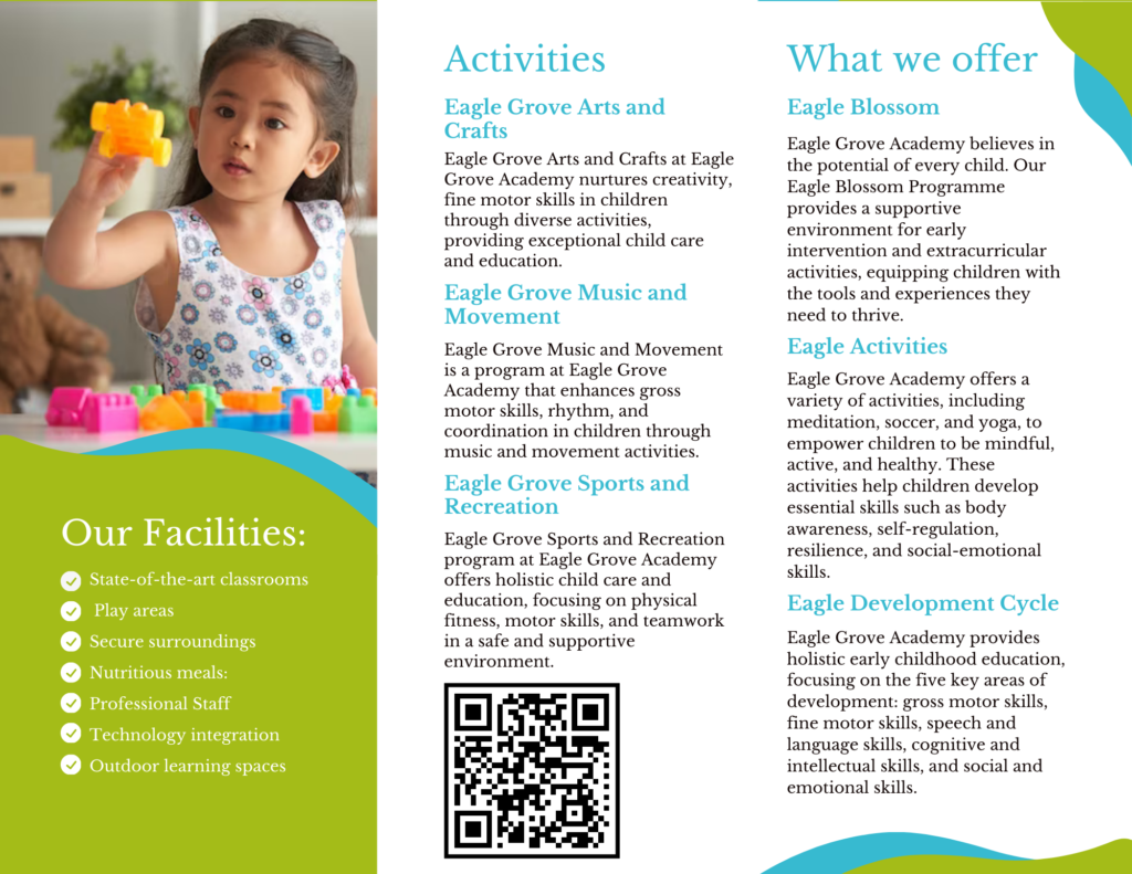 I had the opportunity to design a cohesive set of branding materials for Eagle Grove Academy, an Australian playgroup academy committed to nurturing early childhood learning. The project included a professionally crafted letterhead, an engaging Z-fold flyer, and an eye-catching business card. Each item was thoughtfully designed to reflect the academy’s playful yet professional identity, using a child-friendly color palette, clean typography, and consistent branding elements. My goal was to create designs that not only communicated trust and care to parents but also captured the joyful and nurturing spirit of the academy.